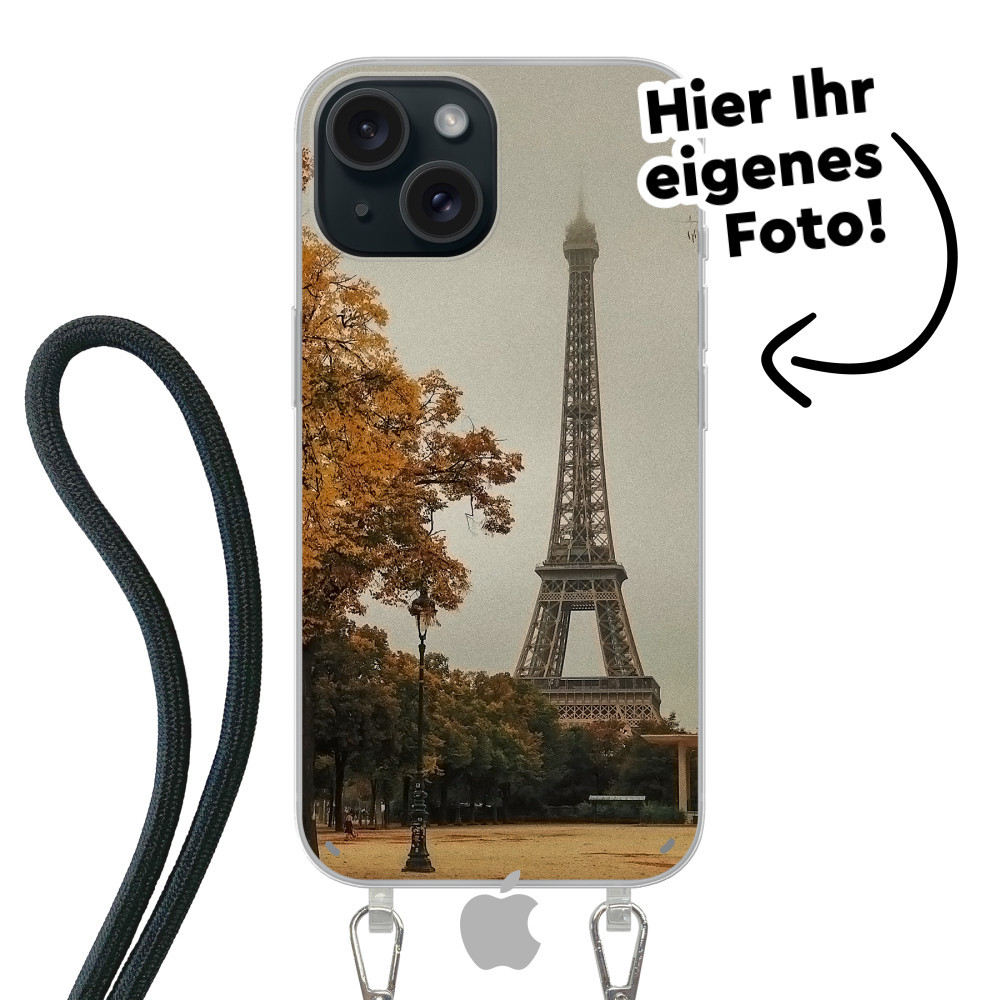Entdecken Sie das ultimative iPhone 15 Hülle! Schützendes, flexibles Soft-Case iPhone Hülle mit einem Kabel zum Umhängen. Ihr Design in lebendigen Farben mit UV-Druck.