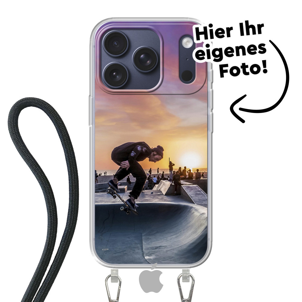 Entdecken Sie das ultimative iPhone 17 Pro Hülle! Schützendes, flexibles Soft-Case iPhone Hülle mit einem Kabel zum Umhängen. Ihr Design in lebendigen Farben mit UV-Druck.