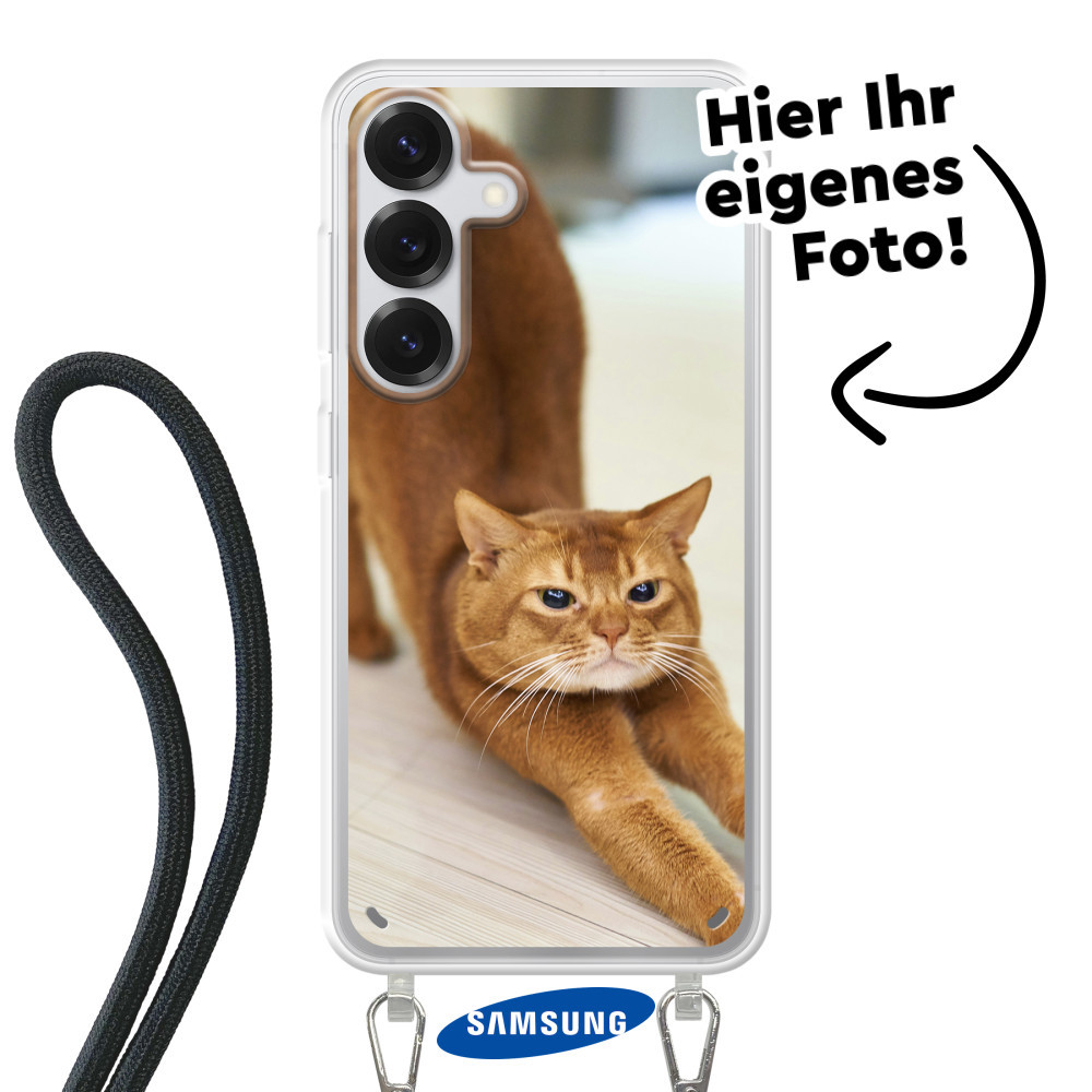 Entdecken Sie das ultimative Samsung Galaxy S25 Hülle! Schützendes, flexibles Soft-Case Samsung Hülle mit einem Kabel zum Umhängen. Ihr Design in lebendigen Farben mit UV-Druck.